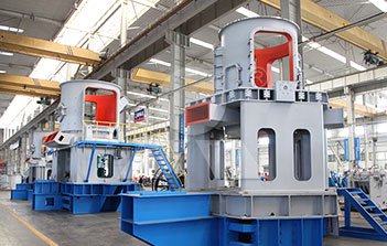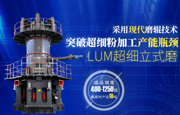 LUM超細立磨主要由電動機、減速機、磨輥裝置、磨盤裝置、加壓裝置、選粉機、機體和油站等組成。 主電機通過減速機帶動磨盤轉動,同時風從進風口進入磨機,物料經螺旋給料機下料口落在磨盤中央,在離心力的作用下,物料從磨盤中央向邊緣均勻移動,經過磨盤上的粉磨輥道區域時,受到磨輥的碾壓,大塊物料直接被壓碎,細粒物料受擠壓后形成料床進行粒間粉碎。被粉碎的物料繼續向磨盤邊緣移動,直到被風環處的強氣流帶走,而較大的顆粒物料又重新掉落到磨盤上繼續粉碎,氣流中的物料經過上部的分離器時,在轉子葉片的作用下,粗顆粒重新回到磨盤上粉磨,合格的細粉隨氣流一起出磨,被系統的集粉器收集,被收集到的粉料即為超細立磨磨出的產品。混入物料的鐵塊等雜物隨物料運動到磨盤邊緣時,由于自身重量大而不能被風吹起,跌落至磨機下腔被安裝在磨盤底部的刮料板刮入排渣口排出機外。