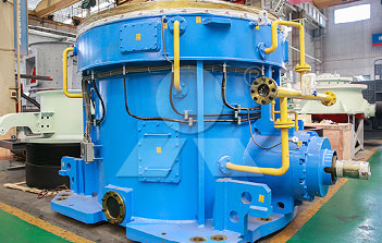 主電機通過減速機帶動磨盤轉(zhuǎn)動,同時風(fēng)從進風(fēng)口進入磨機,物料經(jīng)螺旋給料機下料口落在磨盤中央,在離心力的作用下,物料從磨盤中央向邊緣均勻移動,經(jīng)過磨盤上的粉磨輥道區(qū)域時,受到磨輥的碾壓,大塊物料直接被壓碎,細粒物料受擠壓后形成料床進行粒間粉碎。被粉碎的物料繼續(xù)向磨盤邊緣移動,直到被風(fēng)環(huán)處的強氣流帶走,而較大的顆粒物料又重新掉落到磨盤上繼續(xù)粉碎,氣流中的物料經(jīng)過上部的分離器時,在分離器葉片的作用下,粗顆粒重新回到磨盤上粉磨,合格的細粉隨氣流一起出磨,被系統(tǒng)的集粉器收集,被收集到的粉料即為超細立磨磨出的產(chǎn)品。混入物料的鐵塊等雜物隨物料運動到磨盤邊緣時,由于自身重量大而不能被風(fēng)吹起,跌落至磨機下腔被安裝在磨盤底部的刮料板刮入排渣口排出機外。