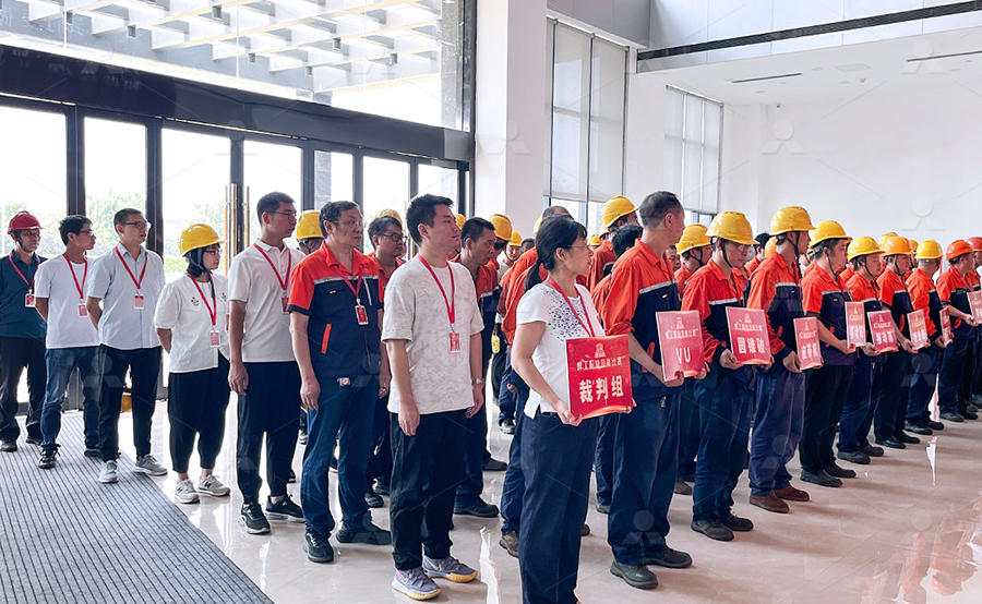 各事業部經理、公司領導、受邀前來的人社局領導與優中選優的 45 名焊工選手共同參與了 11 日上午的開幕式。